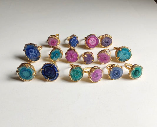 Bulk Wholesale Solar Quartz Rings – DIY Gold Electroplated Rings in Pink, Purple, Green Prong Setting