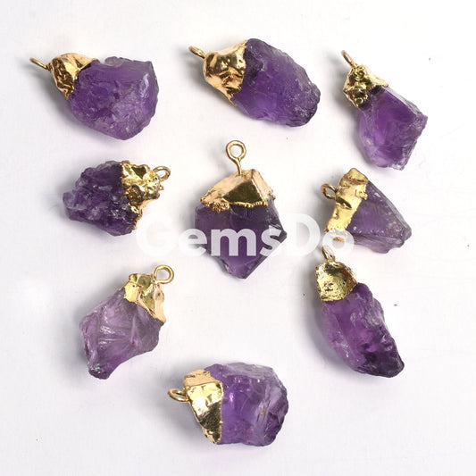 Birthstone Tiny Raw Pendant | Gold Electroplated Gemstone Charms Wholesale Lot