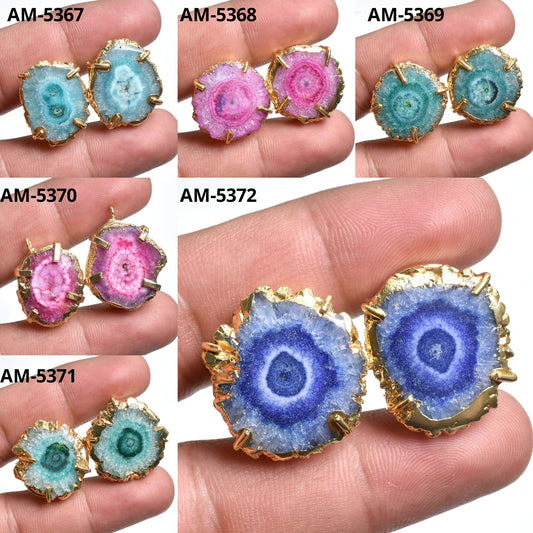 All-Color Solar Quartz Stud Earrings, Gold Electroplated Jewelry