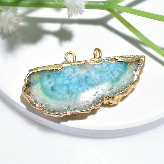 Beautiful Sky Blue Geode Pendant – Fancy Solar Quartz Double Bail Gold Electroplated Necklace
