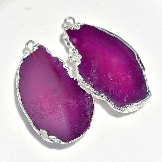 Chic Pink Solar Quartz Druzy Stones – Silver Electroplated Geode Pair for Earrings