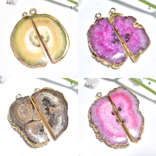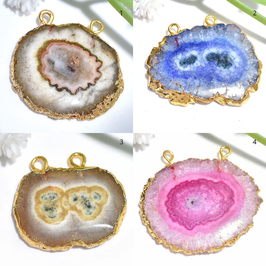 Attractive Window Druzy Agate Pendant - Fancy Electroplated Solar Quartz, Gold Plated Agate Geode Slice for Her