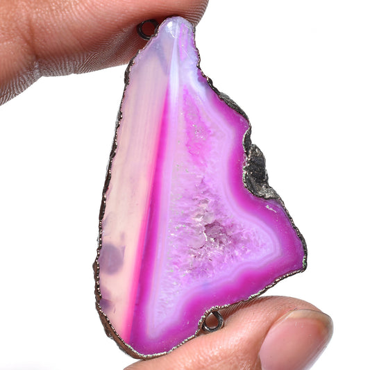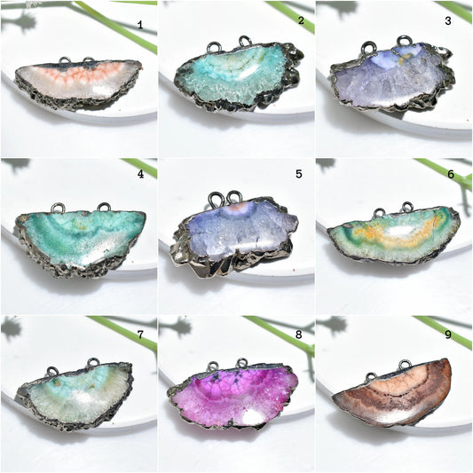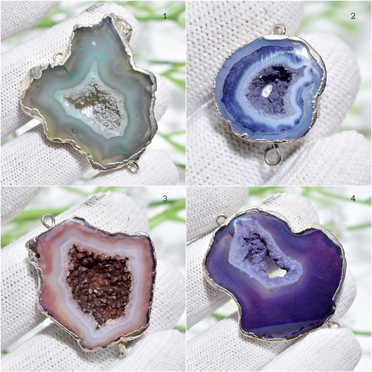Natural Silver Electroplated Geode Druzy Double Bail Connector Set – Necklace & Bracelet Making DIY Gift