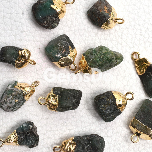 Raw Emerald Gold Electroplated Necklace Pendant - Wholesale Lot Gemstone Connectors