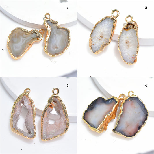 Natural Blue Geode Druzy Earring Pair – Gold Electroplated Single Bail DIY Quartz Gemstone Charm Connector