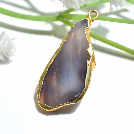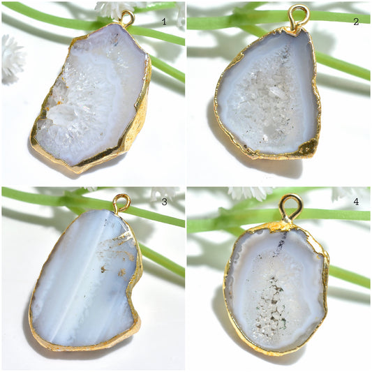 Solar Quartz Agate Druzy Slice Pendant - Gray & White Agate Gold Electroplated DIY Necklace Jewelry
