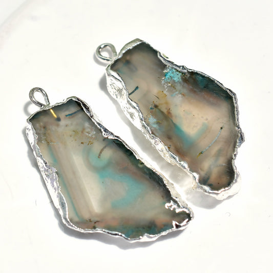 Silver Electroplated Green Geode Druzy Pair – Perfect for Boho Jewelry Crafting