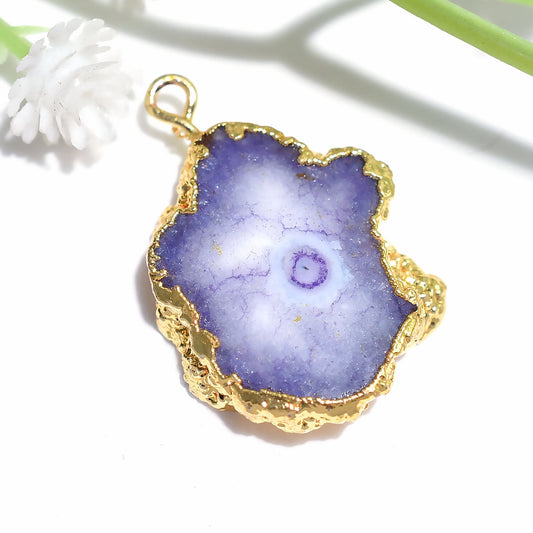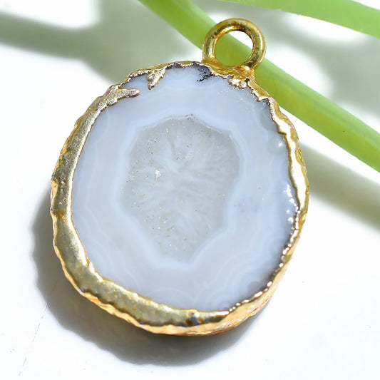 Graceful Druzy Agate Gemstone Pendant - Gold Electroplated Solar Quartz for DIY Jewelry Gifts