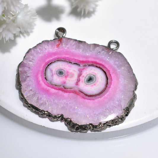 Handcrafted Pink Druzy Connector – Electroplated Solar Stone with Black Oxidized Finish