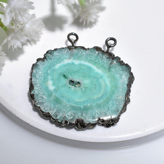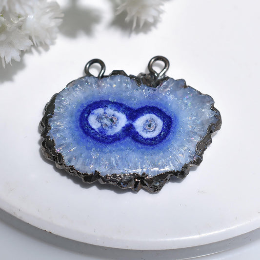 Solar Quartz Blue Agate Pendant – Double Connector for DIY Jewelry Kits | Black Electroplated Loops