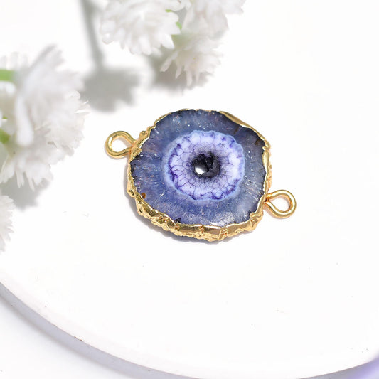 Natural Druzy Blue Solar Quartz Connector – Golden Electroplated Gemstone for Crafts