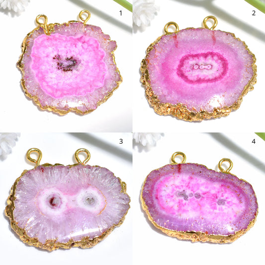 Natural Druzy Pink Solar Quartz,Wholesale Golden Electroplated Connector For Craft