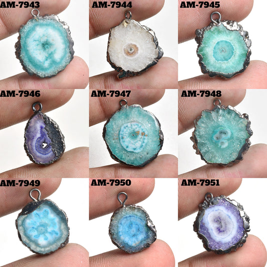 Solar Quartz Pendant Slice – Black Electroplated Crystal Gemstone for Jewelry