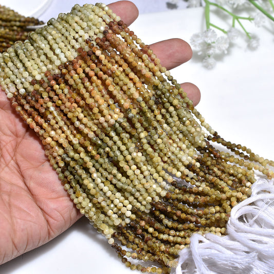 Natural Grossular Garnet Beads – 2mm Multi Green Faceted Gemstone Strand