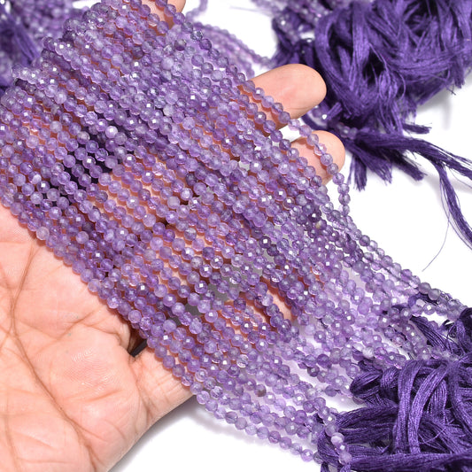 Purple Amethyst Micro Beads – Machine Cut Faceted Gemstone Strand
