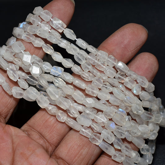 Natural Rainbow Moonstone Tiny Nugget Beads – Blue Fire Gemstone Strand