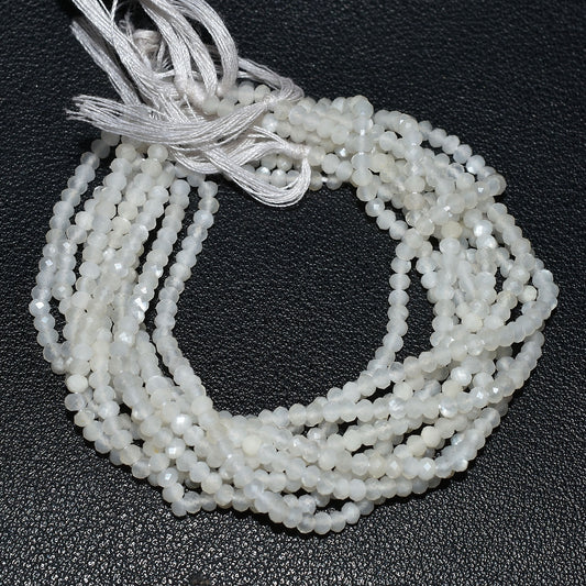 Natural White Moonstone Faceted Beads – 3.5mm Tiny Gemstone Strand