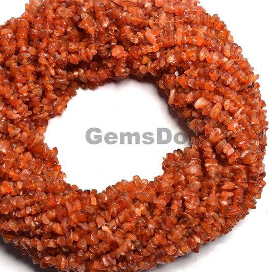 Natural Carnelian Uncut Chip Beads String | 34-Inch Raw Orange Gemstone Strand