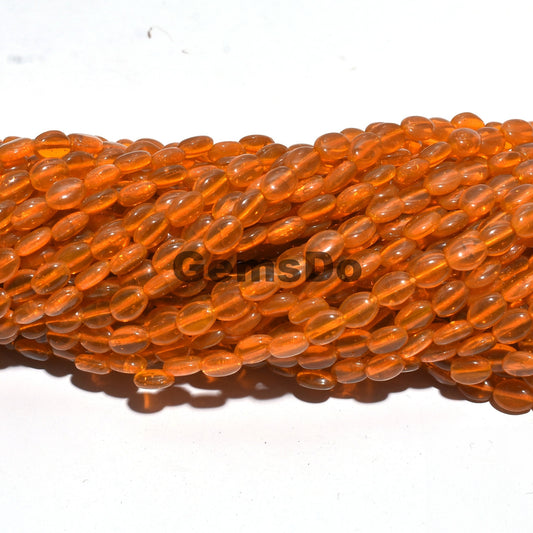 Tangy Orange Hydro Quartz Oval Beads - Smooth Orange Gemstone Strand