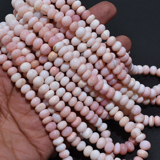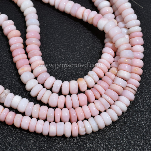 AAA Quality Pink Opal Rondelle Beads| 6.5-7mm Smooth Gemstone Strand