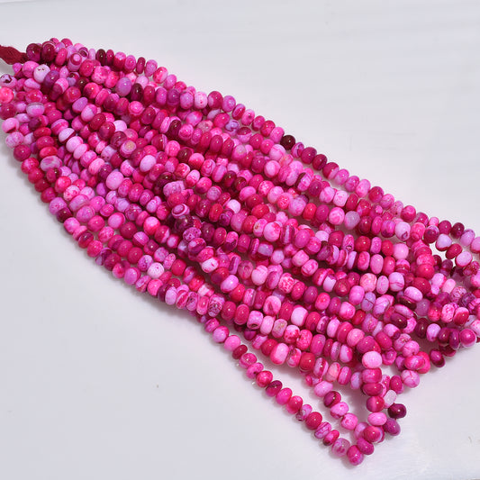 Fuchsia Pink Opal Rondelle Smooth Beads 16 Inch Strand, Wholesale Polished Gemstone Beads For DIY Accessories