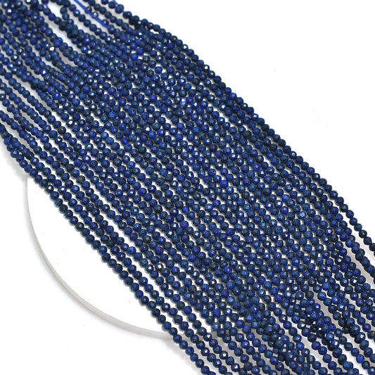 Natural Blue Lapis Lazuli Micro Faceted Round Beads – 12.5 Inch Wholesale Gemstone Strand For DIY Jewelry