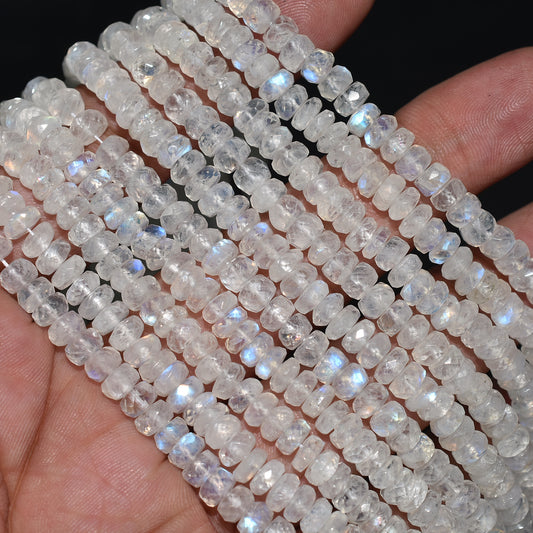 Beautiful Rainbow Moonstone Faceted Rondelle Beads – 15 Inch Strand Wholesale Flashy Gemstone For DIY Jewelry