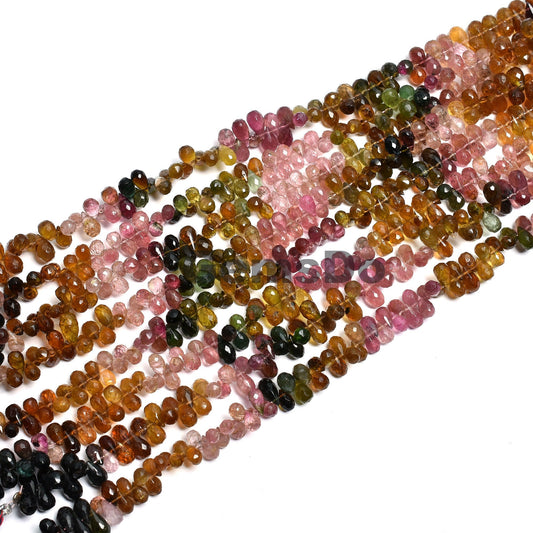 Multi Tourmaline Drops Beads | 8-Inch Strand | Faceted Teardrop Briolettes Size - 4x5x8mm