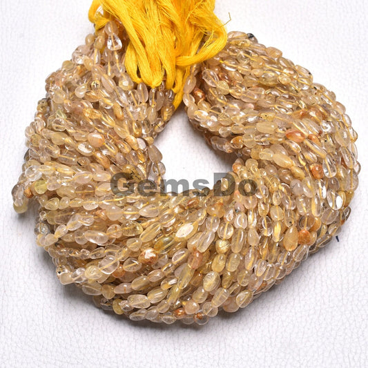 Golden Rutile Nugget Beads 12'' Strand, Natural Gemstone Tumble Beads Size-4x5.5x9mm