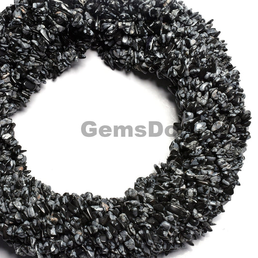 Snowflake Obsidian Uncut Chip Beads 34'' Strand, Wholesale Raw Nugget Gemstone Beads