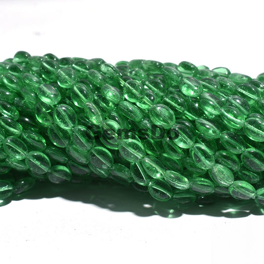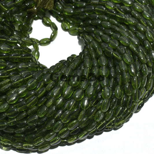Chrome Diopside Hydro Quartz Beads - Smooth Green Oval Gemstone Strand, 50 Carat