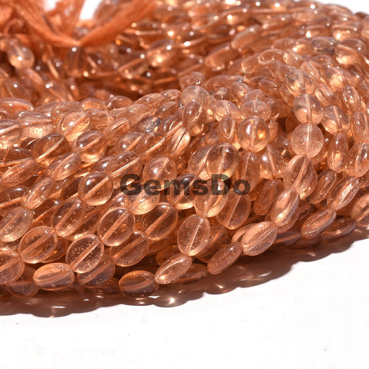 Green Quartz Hydro Beads - Smooth Oval Gemstone Strand, 43 Carat