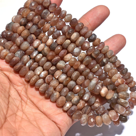 Brown Chocolate Moonstone Faceted Beads - Genuine Gemstone Rondelle Strand