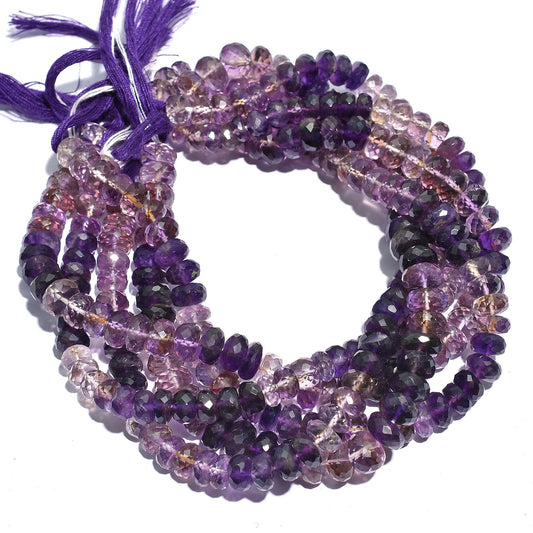 Natural African Amethyst Shaded Rondelle Faceted Beads – Authentic DIY Gemstone Strand