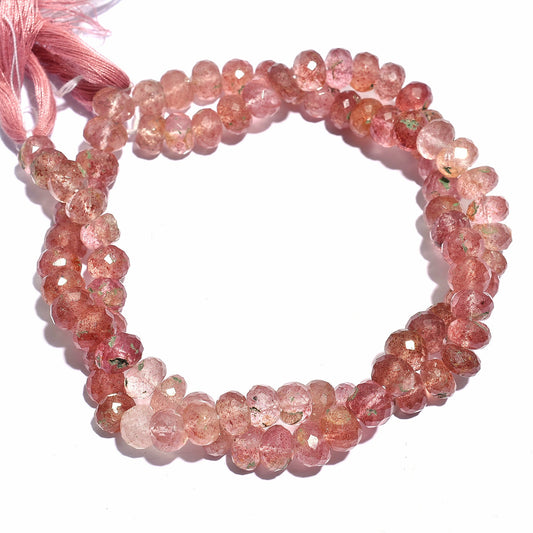 Natural Pink Strawberry Quartz Rondelle Beads – Faceted Gemstone Strand