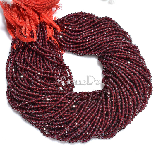 Natural Garnet Faceted Round Beads | 3mm Micro Cut Gemstone Strand