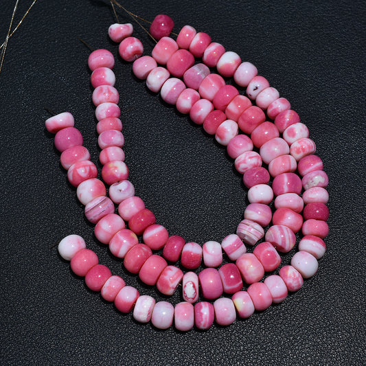 Bright Pink Opal Rondelle Gemstone Beads, Wholesale Smooth Bead Strand For DIY Jewelry
