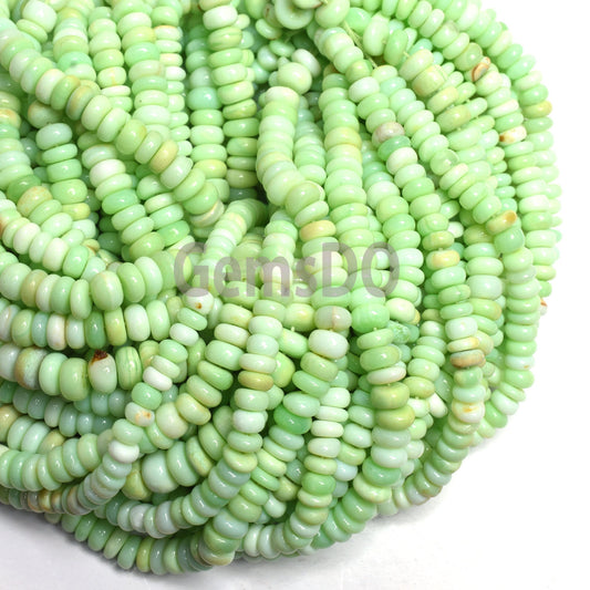 Natural Green Opal Rondelle Smooth Beads 16 inch Long String For Jewelry Making