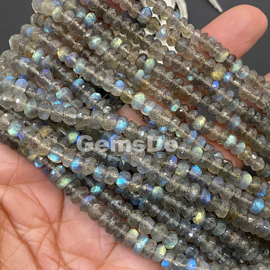 Blue Flashy Labradorite Faceted Rondelle Beads, 9 Inch Strand Faceted Gemstone Beads
