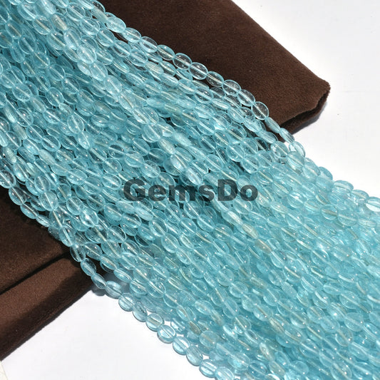 Aquamarine Hydro Quartz Beads - Smooth Oval Gemstone Strand, 40 Carat