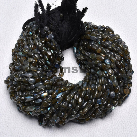 Natural Labradorite Oval Nugget Plain Smooth Beads, Blue Flashy Strands, Black Rainbow Tiny Gemstone
