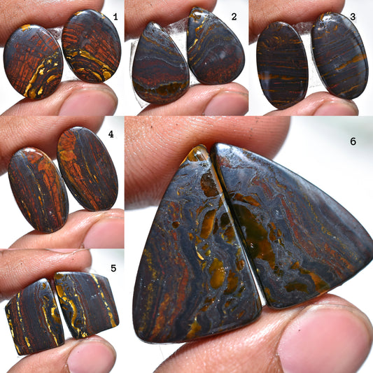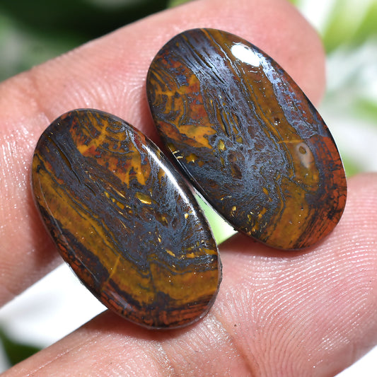 Unique Iron Tiger Eye Oval Pair – Designer Matching Loose Gemstone Set (11x20x2mm,/23ct)