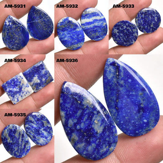 Lapis Lazuli Cabochon Pair - Mixed Shape Loose Stones for Earrings