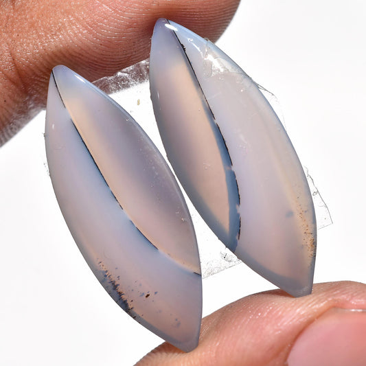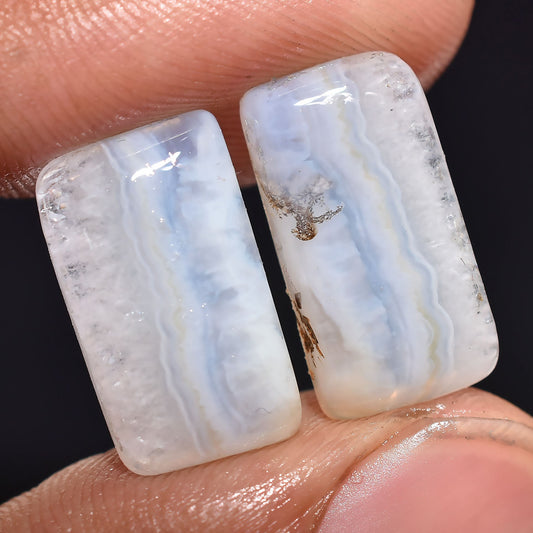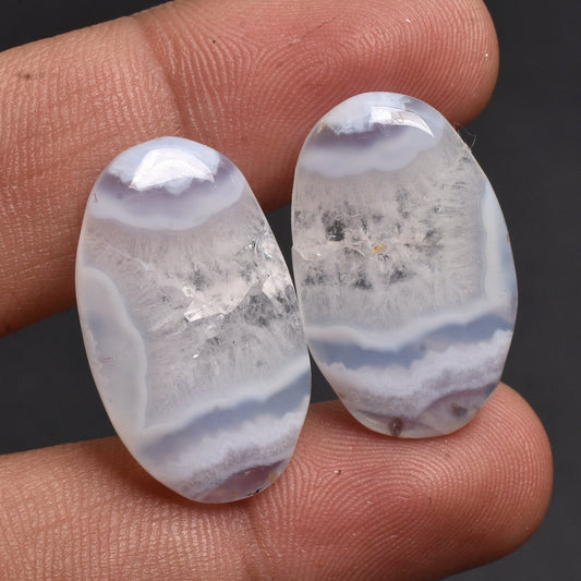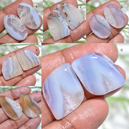 Natural Blue Lace Agate Cabochon Pair, Matched Semi-Precious Gemstones