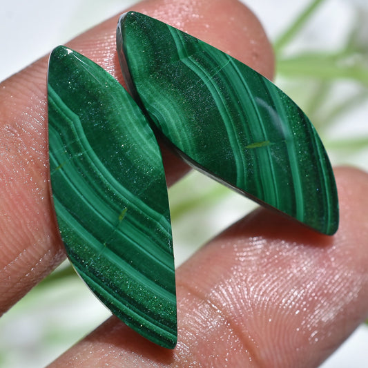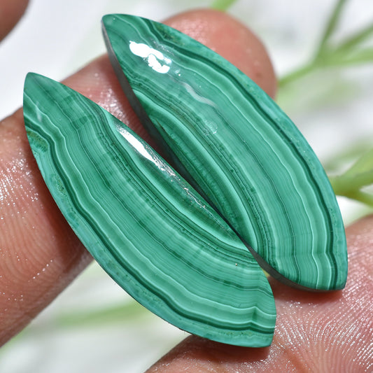 Natural Malachite Cabochon Pair - Smooth Green Gemstone for Custom Jewelry & Gift Ideas