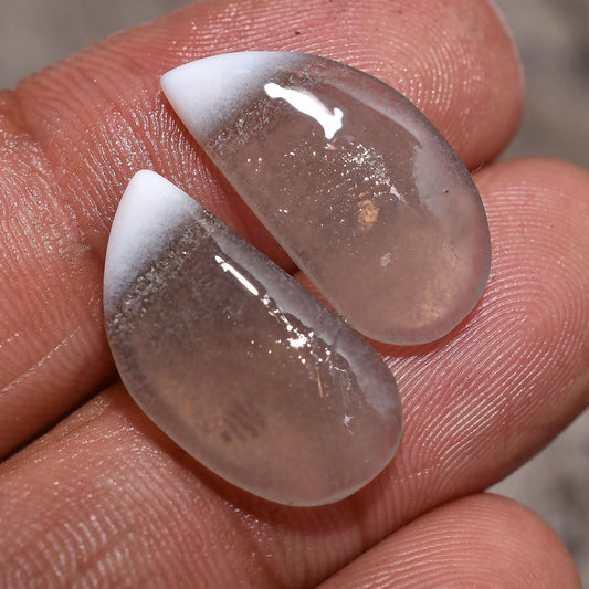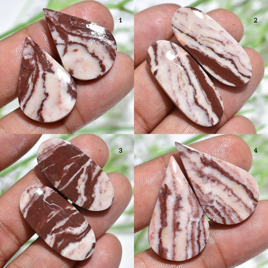 Zebra Calcite Jasper Pair – Teardrop Shaped Natural Gemstones (11x22x3mm,/17ct)