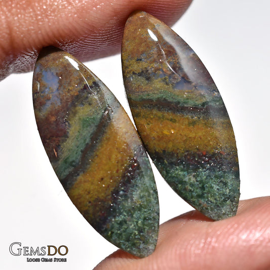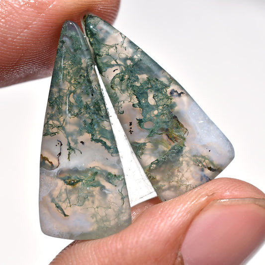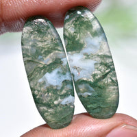 Moss Agate Matched Pair - 100% Natural Green Oval & Pear Gemstones