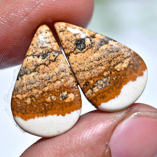 Natural Picture Jasper Cabochon Pair - Fancy Pear Shape Matching Pair for Earrings