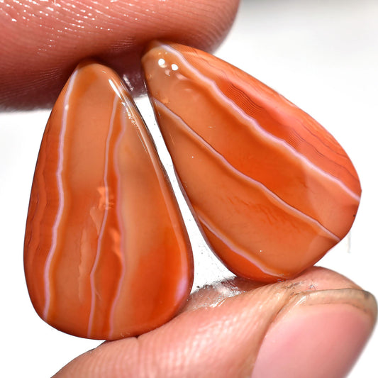 Natural Orange Banded Agate Pair - Unique Pear Shape Cabochons