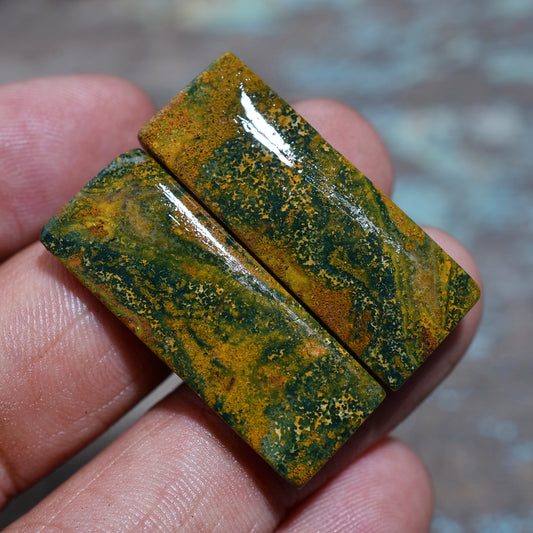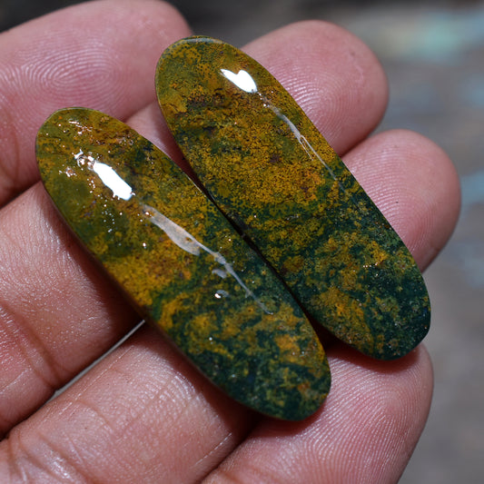 Dark Forest Bloodstone Gemstone Pair – Natural Polished Stones for Artisan Jewelry